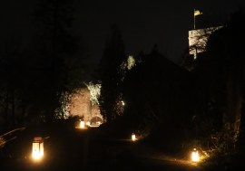 DIE SAGEN- UND GEISTERFÜHRUNG BASIERT AUF EINEM HISTORISCHEN MANUSKRIPT, WELCHES MINDESTENS 21 VERSCHIEDENE GEISTER UND andere Spukerscheinungen beschreibt, die vor allem zur Zeit der Napoleonischen Kriege auf der Gamburg ihr Unwesen getrieben haben sollen. Daneben erfahren Sie von Erzählungen aus dem Sagenschatz des Dorfes, wie z.B. vom Hokemo, von der tragischen Liebesgeschichte der schönen Melusine, aber auch von anderen unheimlichen Ereignissen. Die Tore der Gamburg öffnen sich mit Einbruch der Dunkelheit. In der Burg werden Sie mit einem kleinen Geistertrunk empfangen. Dann beginnt die Wanderung zu den Unglücksorten des Burghofs, des großen barocken Burgparks sowie des einzigartigen Rittersaals, die vom Schein zahlreicher Laternen in ein ganz besonderes Licht getaucht werden. Neben den Lesungen und Erzählungen können dabei immer wieder auch die schaurigen Geräusche, Schreie und Gesänge der Geister und anderer mysteriöser Wesen der Anderswelt vernommen werden. So werden Ihnen schließlich so manche Geheimnisse der Gamburg enthüllt.