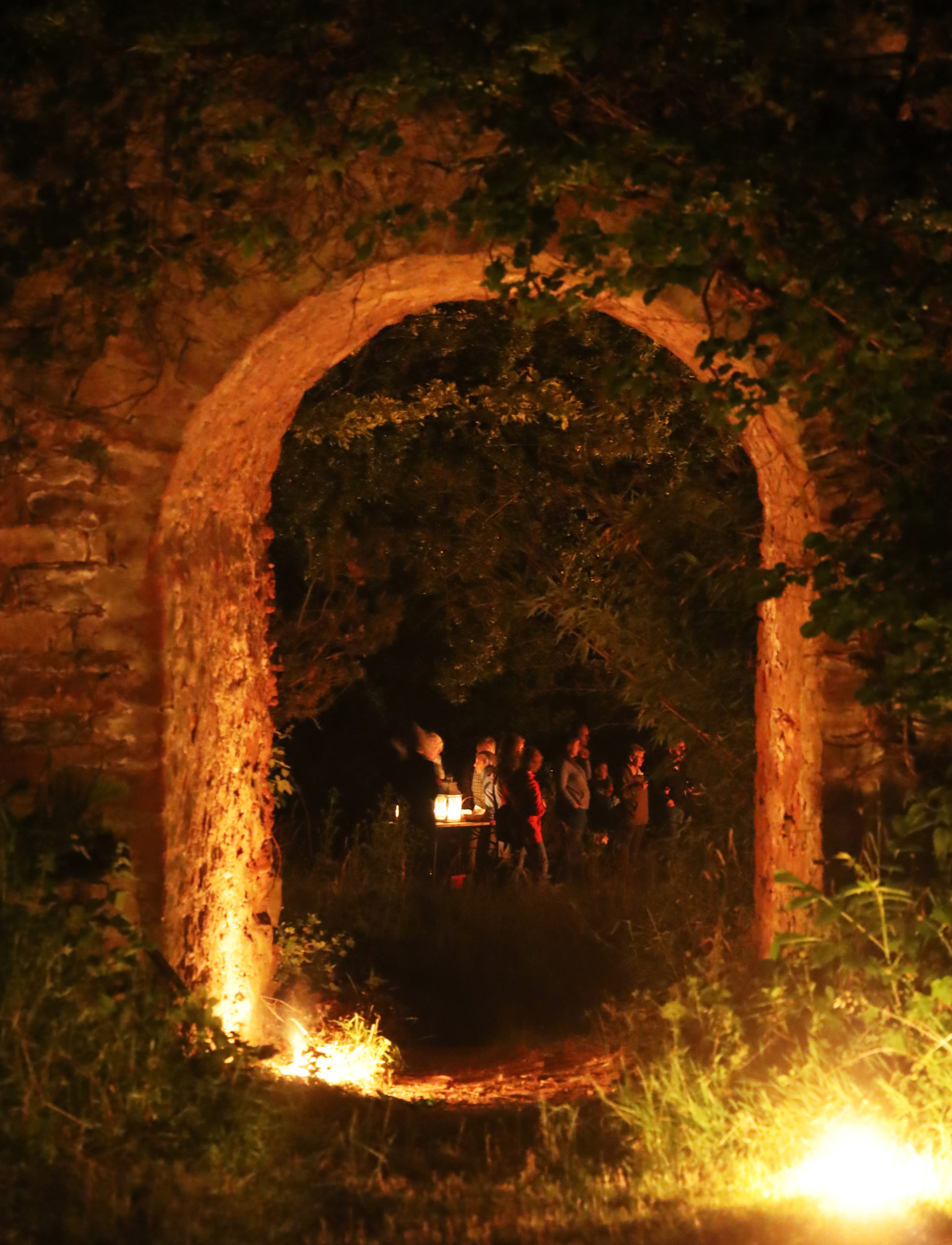 DIE SAGEN- UND GEISTERFĂHRUNG BASIERT AUF EINEM HISTORISCHEN MANUSKRIPT, DAS MINDESTENS 21 verschiedene Geister und andere Spukerscheinungen beschreibt, die vor allem zur Zeit der Napoleonischen Kriege auf der Gamburg ihr Unwesen getrieben haben sollen. Daneben erfahren Sie von ErzĂ€hlungen aus dem Sagenschatz des Dorfes, wie z.B. vom Hokemo, von der tragischen Liebesgeschichte der schönen Melusine, aber auch von anderen unheimlichen Ereignissen. Die Tore der Gamburg öffnen sich mit Einbruch der Dunkelheit. In der Burg werden Sie mit einem kleinen Geistertrunk empfangen. Dann beginnt die Wanderung zu den UnglĂŒcksorten des Burghofs, des groĂen barocken Burgparks sowie des einzigartigen Rittersaals, die vom Schein zahlreicher Laternen in ein ganz besonderes Licht getaucht werden. Neben den Lesungen und ErzĂ€hlungen können dabei immer wieder auch die schaurigen GerĂ€usche, Schreie und GesĂ€nge der Geister und anderer mysteriöser Wesen der Anderswelt vernommen werden. So werden Ihnen schlieĂlich so manche Geheimnisse der Gamburg enthĂŒllt.