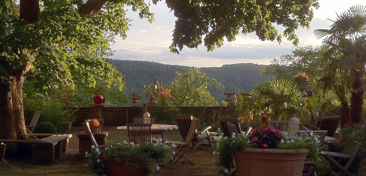Der Bereich des heutigen Burgcafés mit seinen mediterranen Pflanzen war bis Anfang des 19. Jhs. vollständig bebaut und mit einer wesentlich höheren Wehrmauer versehen. Heute ist es ein sehr stimmungsvoller Ort mit einer wundervollen Aussicht.