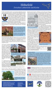 Anschließend geht es bergauf weiter nach Höhefeld. Dort erwarten den Wanderer zunächst ein altes Steinkreuz und die mächtige Luthereiche. Danach bietet der Panorama-Rundweg am Neuberg bzw. Götzenberg einen spektakulären Fernblick ins Taubertal sowie Informationen zum archäologischen „Höhefelder Fund“. Nördlich davon erstreckt sich die Kulturlandschaft Frau Holle mit einem nach ihr benannten Grenzbaum unterhalb des Knollenbergs und dem Seebrunnen, in dem geheimnisvolle Wassermädchen wohnen sollen. Im Ort selbst kündet eine Tafel zudem von der Kirchengeschichte, dem Naturkünstler Erwin Aichele und der Ortswirtschaft „Zum Goldenen Adler“.